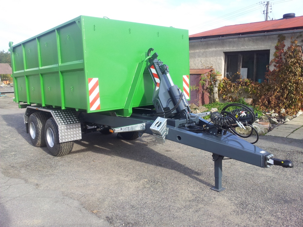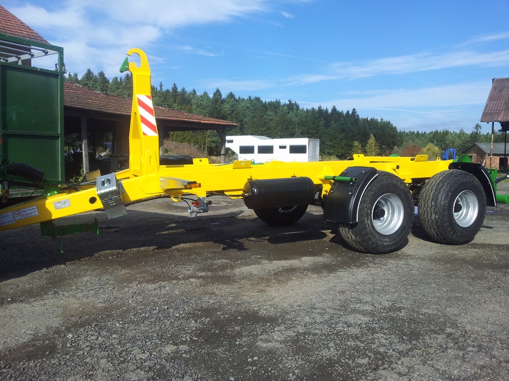Sklopný hák pro kontejnery 3800-4500 mm (nutný další okruh hydrauliky, nebo 1), nebo 2); Výsuvný hák pro kontejnery s různou výškou oka - ručně výsuvný; Výsuvný hák pro kontejnery s různou výškou oka - hydraulicky výsuvný (nutný další okruh hydrauliky, nebo 1), nebo 2)); Provedení háku pevný 1570 mm; Provedení háku pevný 1340 mm; Prodloužená verze (var. 2) pro kontejnery 4200 - 5000mm (sklopný hák v ceně příplatku); Pohon kardanem (čerpadlo, kardan, rozvaděč, nádrž, el. ovládání kabelové); 1) Ovládání nosiče – 2 sekčním rozvaděčem s el. kabelovým ovládáním; 1) Ovládání nosiče – 3 sekčním rozvaděčem s el. kabelovým ovládáním; 1) Ovládání nosiče – 4 sekčním rozvaděčem s el. kabelovým ovládáním; Ovládání rozvaděče el. bezdrátové; 2) Elektrické kabelové ovládání sklopného nebo výsuvného háku (při 2 hydr. okruzích traktoru); Zvuková signalizace zajištění kontejneru; Automatická blokace zadní nápravy při natahování (není nutný další okruh hydrauliky); Pohon aktivních kontejnerů (rychlospojky u háku); Jiná vizkózní třída oleje než standard; Oko otočné 40 mm; Oko otočné 50 mm; Oko pevné Scharmuller 50 mm; Hlava závěsná Scharmuller K80 mm; Plnohodnotná rezerva 1 ks, volně ložená ( typ dle základního osazení, ostatní na dotaz); Pneu 500/50-17 (diagonální, výměna za 400/60-15,5); Pneu 12,5/80-18 (diagonální, výměna za 400/60-15,5); Pneu 500/50-R17 Continental (radiální, výměna za 400/60-15,5); Říditelná zadní náprava (vlečně řiditelná); Parkovací brzda automatická; Pneumatické pérování (nelze kombinovat s řiditelnou nápravou); Povrchová úprava žárový zinek; Povrchová úprava RAL (jiná než 7016)